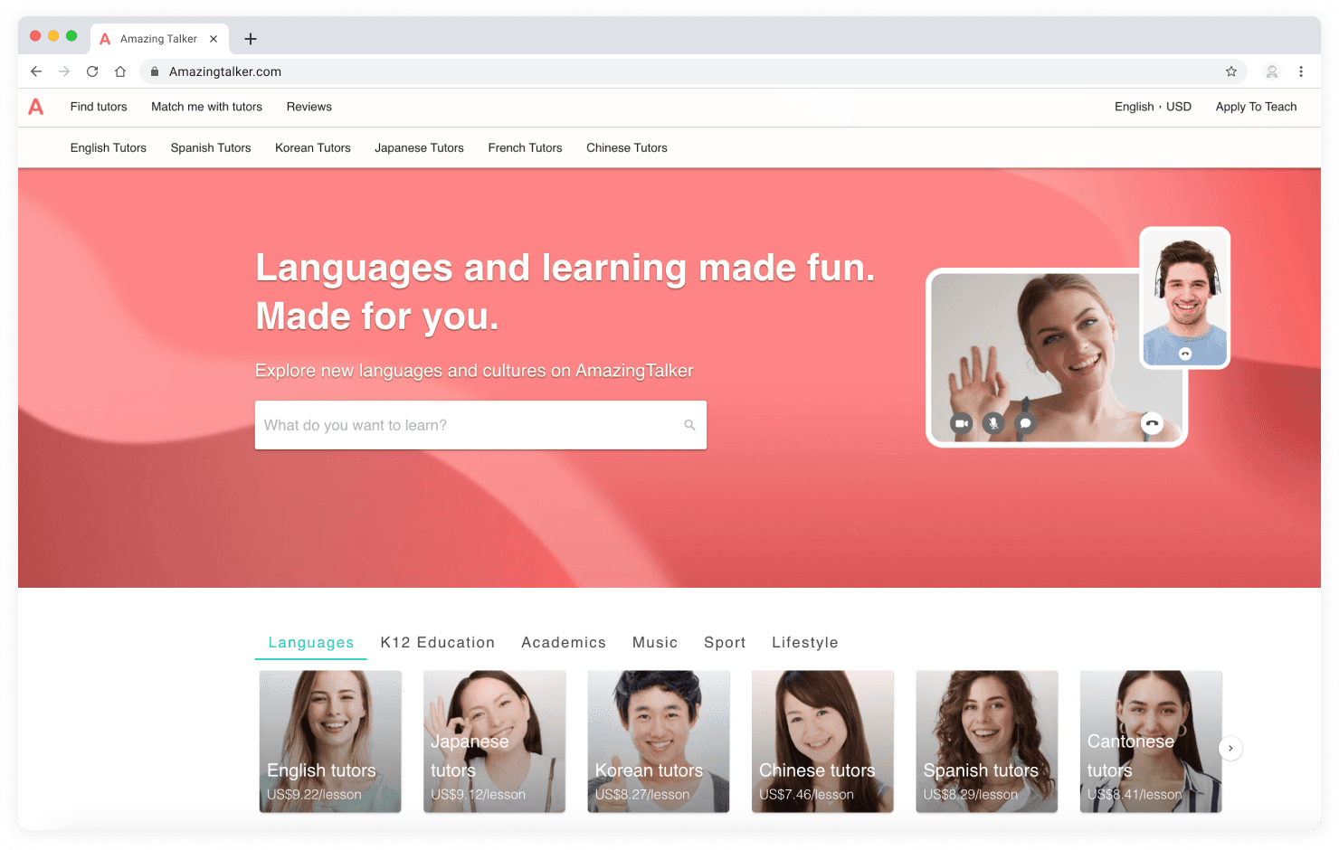 AmazingTalker is a global online learning platform that connects students with certified tutors for one-on-one lessons across languages, academics, and professional skills. The platform is known for its personalized learning model, which uses data-driven matching to pair students with tutors who fit their goals, pace, and learning style.